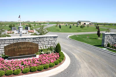 Located at 2595 Road L N.E. (between Wheeler Road and Nelson Road), Guarding Angels Cemetery opened in September of 2009. Perpetually endowed, our cemetery has been designed with the community's needs in mind, allowing for: traditional burial sites, family estates, inurnment gardens, columbarium niches, community ossuary, upright monuments, memorial benches, cenotaphs, avenue of flags and more. The beauty of the grounds has been enhanced with different species of trees, hundreds of shrubs, colorful roses and a variety of flowers blooming throughout the spring and summer months. Two large irrigation ponds with lighted fountains provide a dramatic and elegant backdrop to the landscaping. A large maintenance shop and yard area was completed in 2011 providing a secure enclosure for equipment and inventory. Also added in 2011, the "Avenue of Flags" honors deceased veterans on Memorial Day and Veteran's Day with dedicatory plaques for many of the United States flags that are flown. We feel fortunate to provide this tremendous asset for the Moses Lake community, and have greatly appreciated the overwhelming positive response we have received.